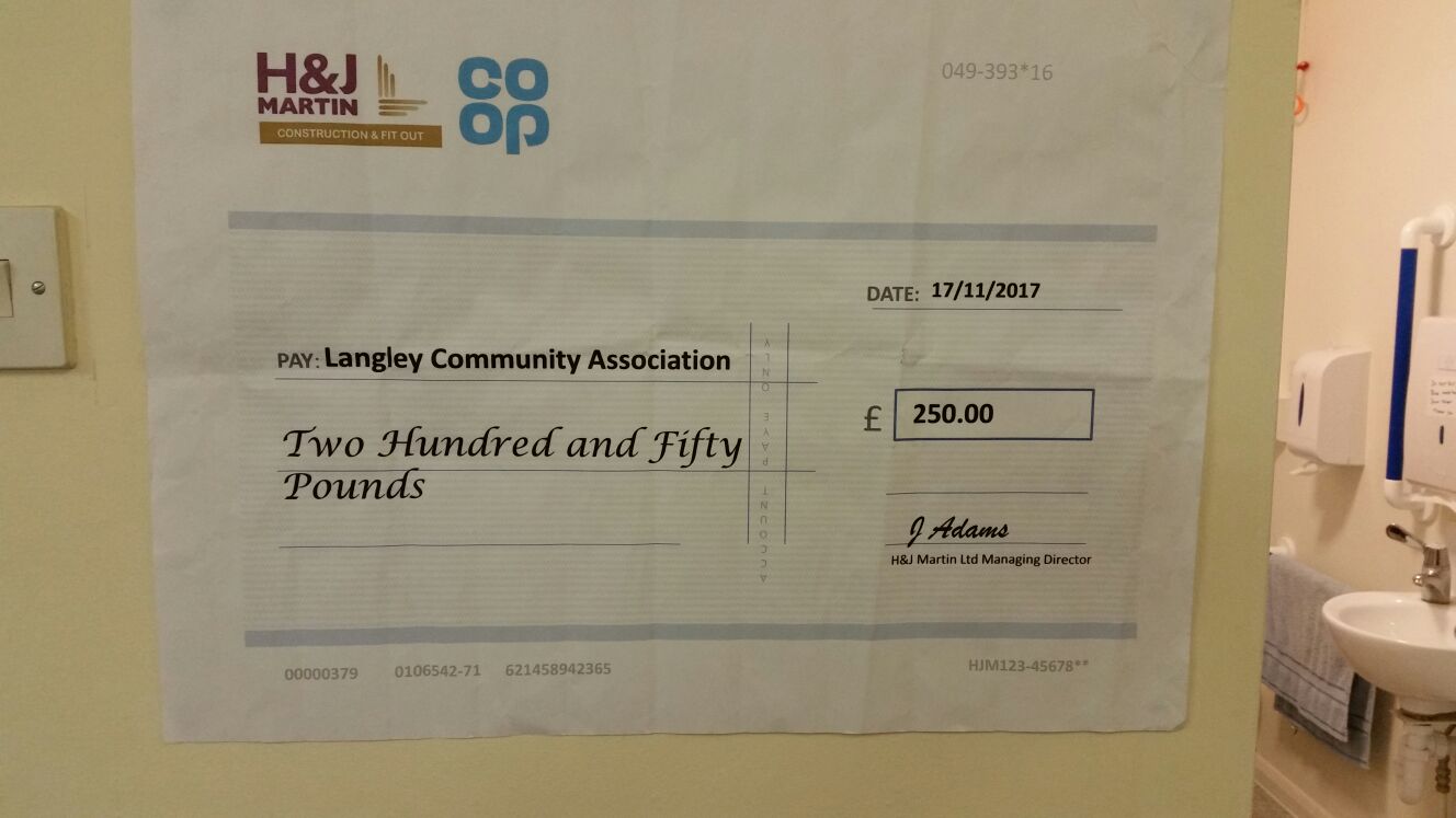 Daphne cut the ribbon at the opening of the New trelawney co op, last week 17th November and the New Langley Community Association was presented with a cheque for £250. |